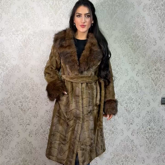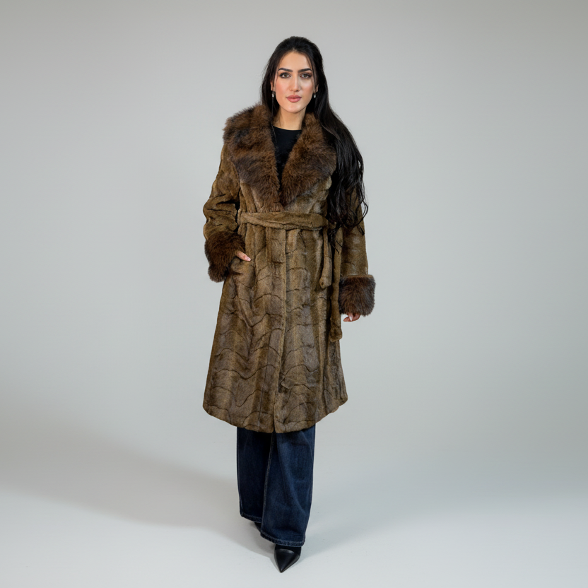 Abrigo Largo de Mujer con Efecto Pelo y Cinturón