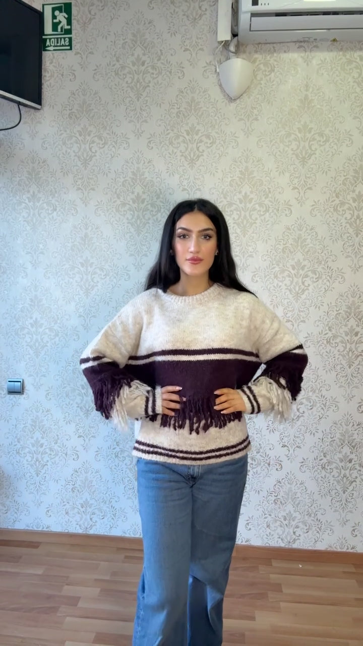 Jersey moderno que combina elegancia y comodidad en una propuesta de diseño sofisticado. Confeccionado en tonos granate y beige, este jersey ofrece una paleta cromática versátil que se adapta a cualquier estilo personal. Su corte contemporáneo y materiales de calidad lo convierten en una pieza imprescindible para crear looks casuales o más refinados. Perfecto para transiciones de estación, proporciona la calidez necesaria sin renunciar al estilo. Una inversión en prendas básicas que nunca pasan de moda.